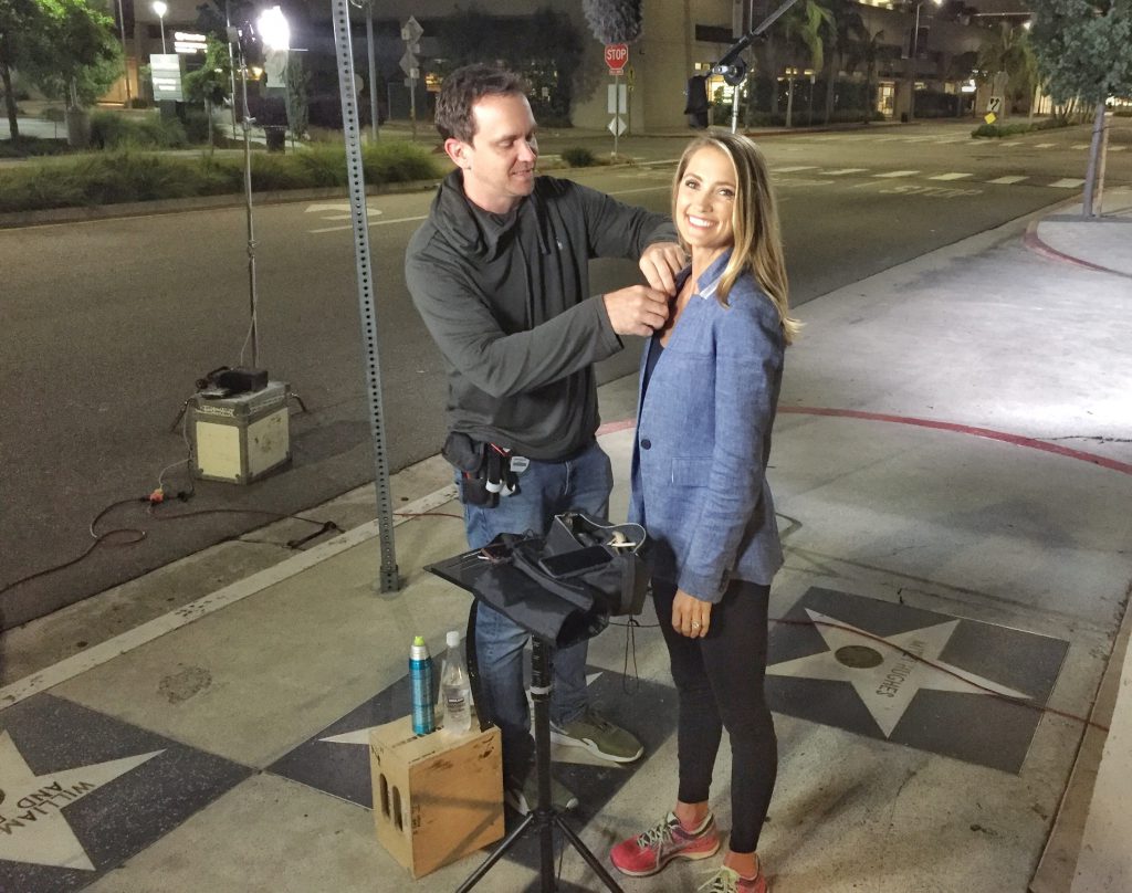 Contact Notice: JavaScript is required for this content. Dan placing microphone on talent at the Walk Of Fame